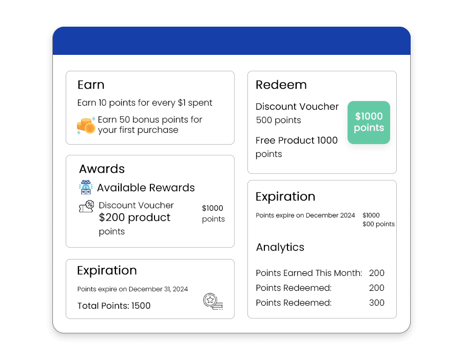 - Reward on Signup → Earn points for welcome sign-up