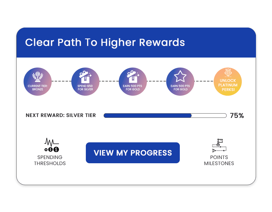 Customers love to see where they’re headed. Retenzy makes every step of the journey easy to understand, whether it’s spending thresholds or points milestones. This motivates higher-order values and increases engagement at every stage.