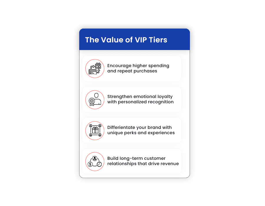 VIP Tiers help increase customer retention, encourage higher spending, and build emotional loyalty. They transform regular shoppers into long-term brand advocates.