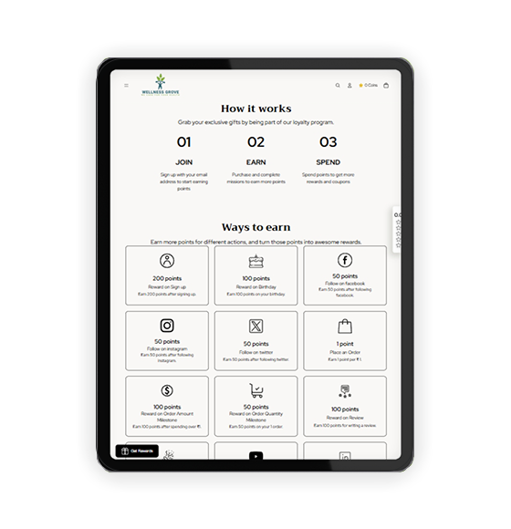 Embed rewards, referrals, and reviews naturally across your store, from product page to checkout.