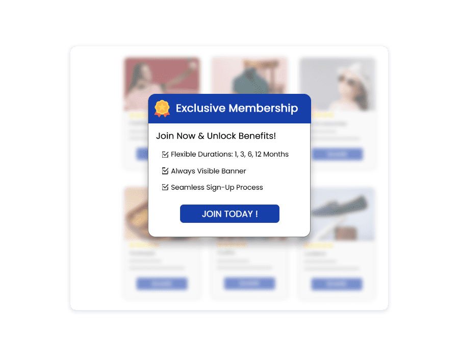 - Always Visible Membership Banner: Highlight your program across every step of the shopping journey with a membership banner displayed on all pages, including product pages and the cart.