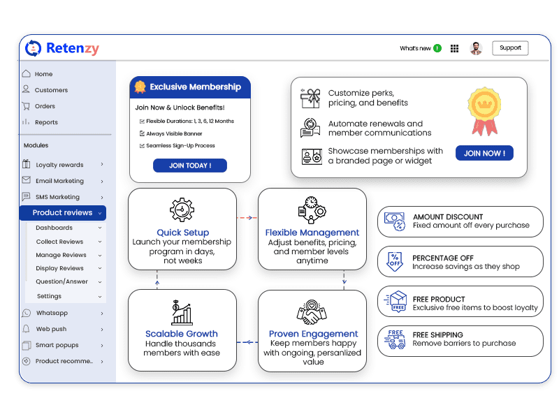 A membership is more than just a purchase; it’s a relationship. With Retenzy’s membership solutions, brands can offer exclusive benefits, premium perks, and ongoing value that keeps customers engaged month after month.