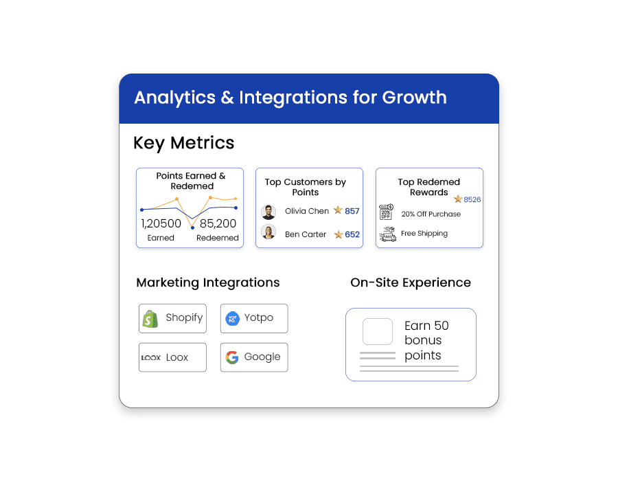 Track points earned, redeemed, top-performing rewards, and loyal customers in real-time. Optimize campaigns with actionable insights.