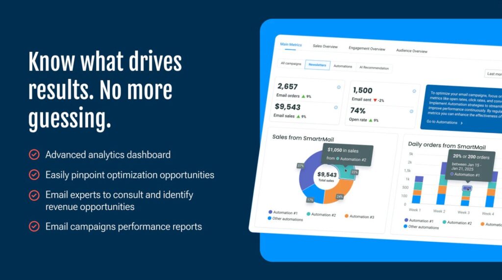 Monitor performance with detailed tracking of open rates, click-through rates, products added to carts, and purchases.