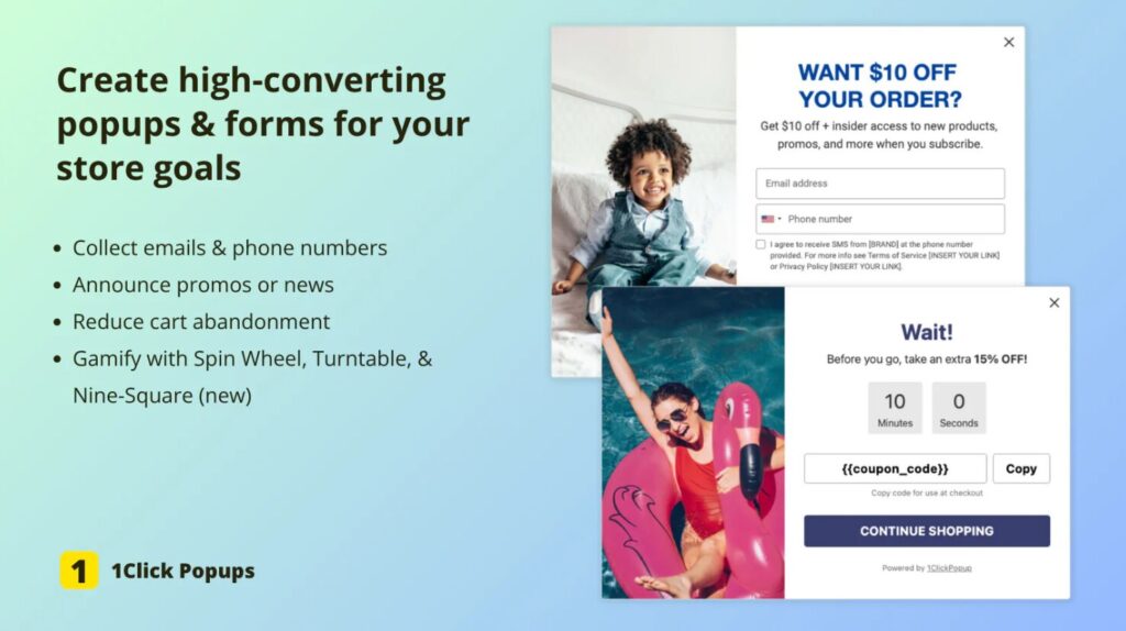 1Click Popups is a powerful and user-friendly email and SMS list-building tool, ideal for Shopify merchants looking to grow their subscriber base effortlessly. Designed specifically for the Shopify ecosystem, this app allows you to create popups, embedded forms, discount offers, and spin-to-win wheels—all without coding. Whether you’re just starting out or scaling your email list rapidly, 1Click Popups provides a smooth experience from design to automation.