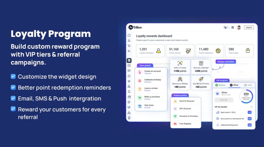 Set up loyalty rewards, referral programs, VIP tiers, and cashback incentives